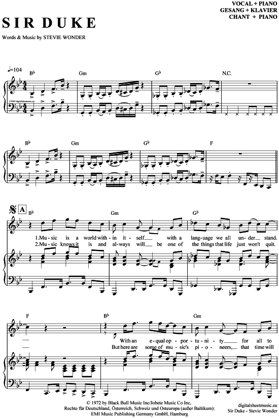 Sir Duke Klavier Gesang Pdf Noten Von Stevie Wonder In B Dur 7070098